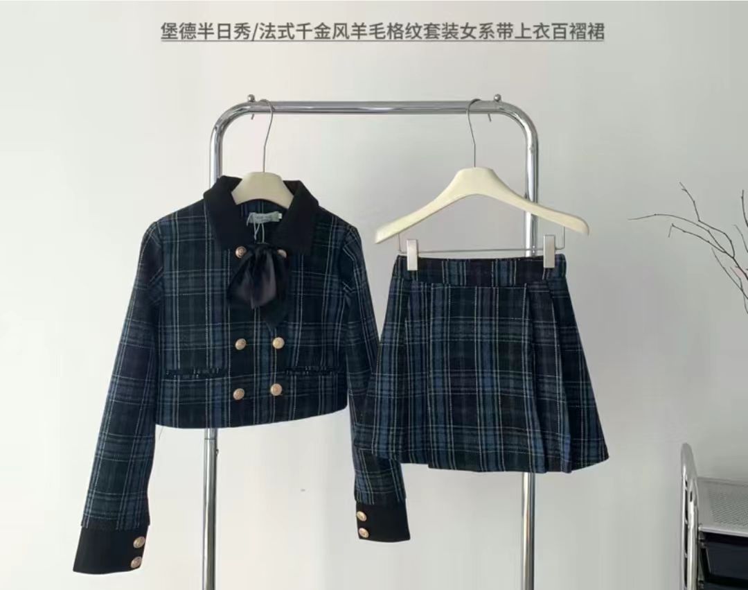 秋装搭配一整套高端气质名媛小洋装高级感小香风毛呢半身裙套装女