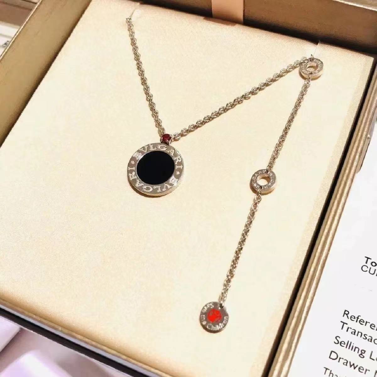 情人节礼物 明星同款镶嵌红宝石黑玛瑙银项链 经典纪念款附礼盒