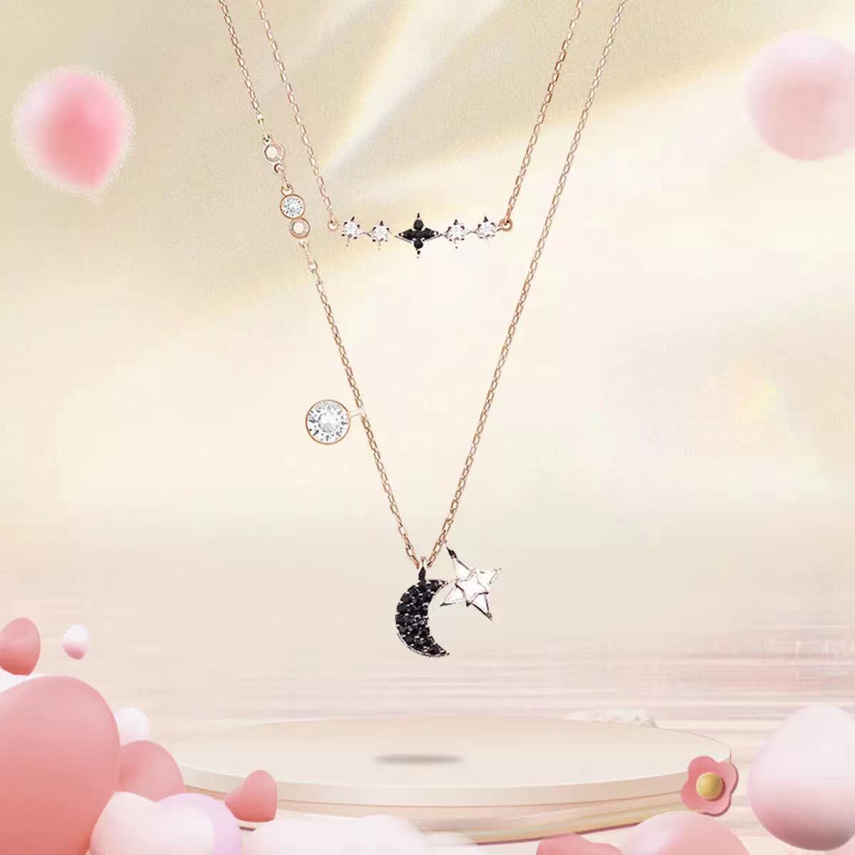 施华洛世奇钜惠好礼 弯月四角星双项链套装 星月水晶项链毛衣链锁骨链