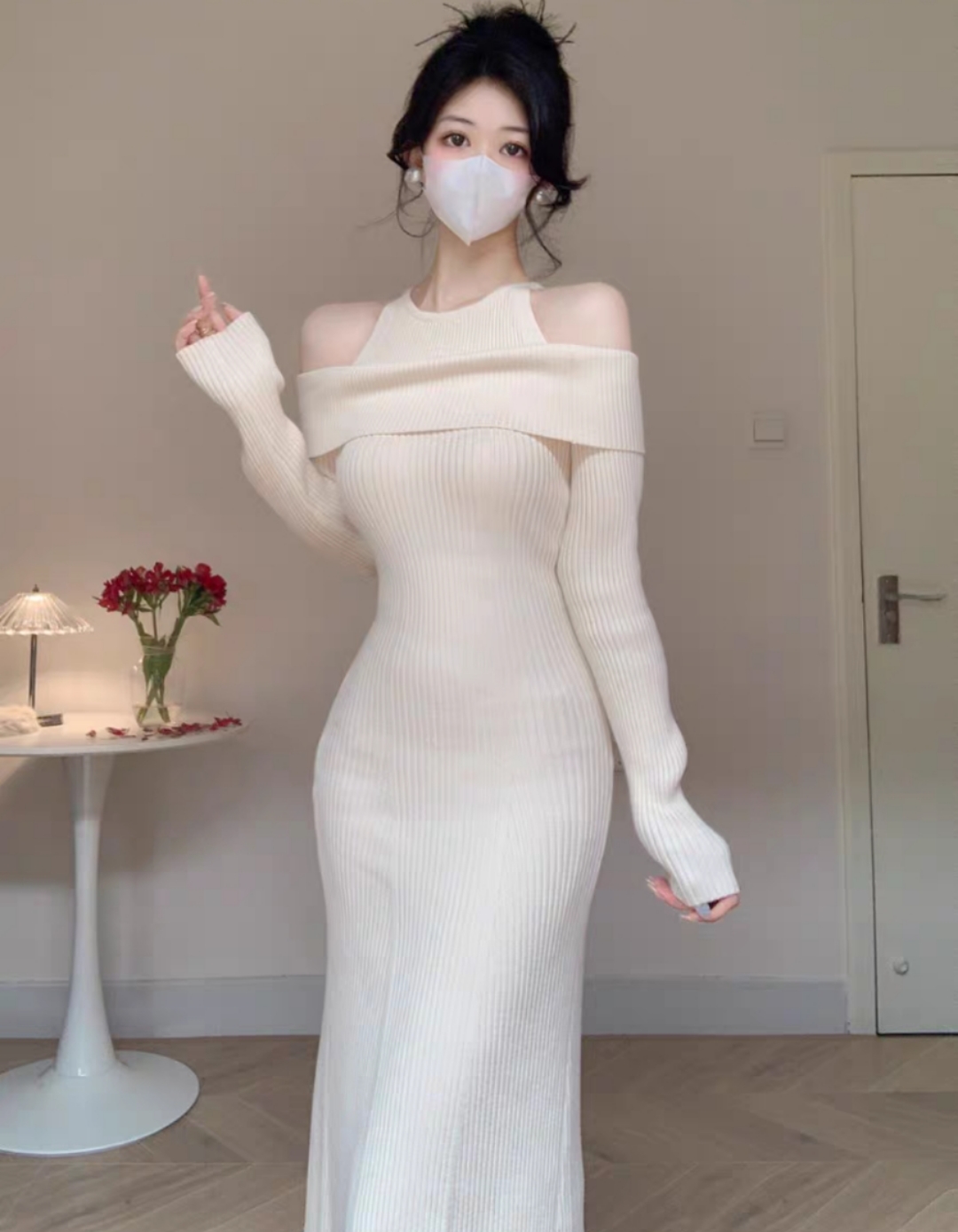 秋冬新品连衣裙 长款 白色 S