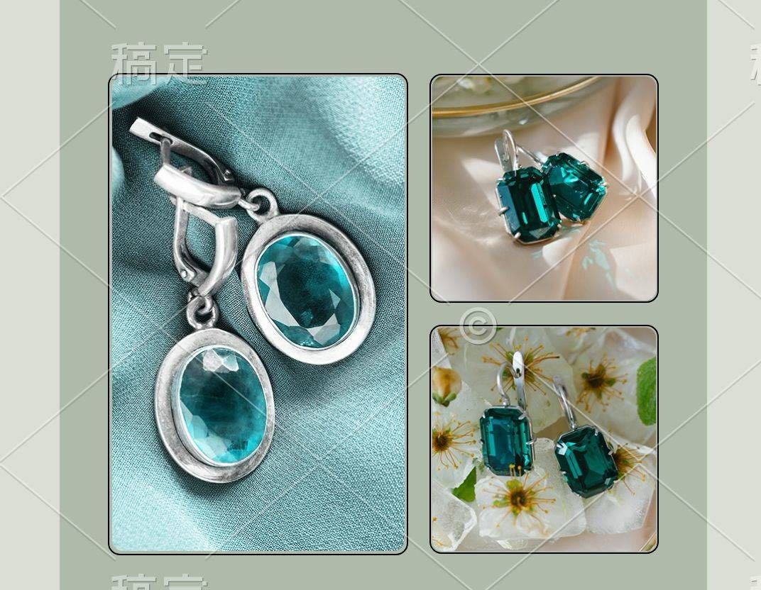 旭平彩宝系列轻奢复古宫廷风方形耳坠小众设计高级感婚纱大气耳饰