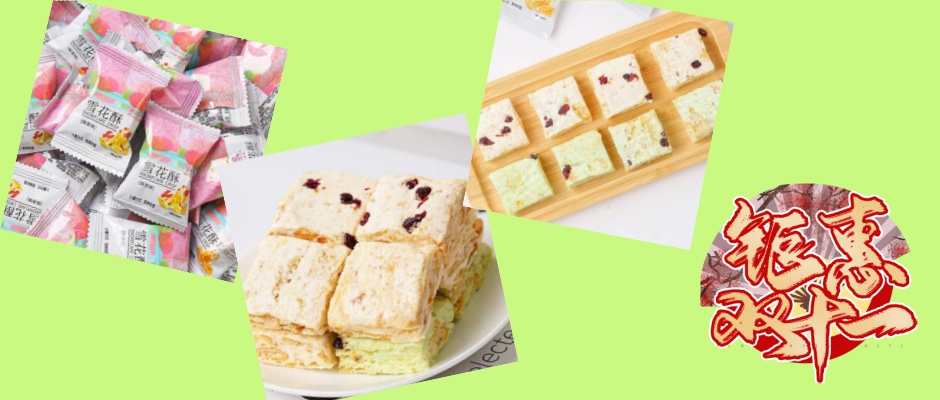 蔓越莓雪花酥,重酸微甜、口感松脆酥软。蔓越莓又称蔓越橘,是杜鹃花科越橘属的常绿小灌木矮蔓藤植物,整体看起来很像鹤,花朵就像鹤头和嘴,因此蔓越莓又称鹤莓。蔓越莓中的黄酮类化合物在体内、体外试验中都有抗氧化功能,尤其是黄酮醇和原花青素对动脉粥样硬化有预防作用。