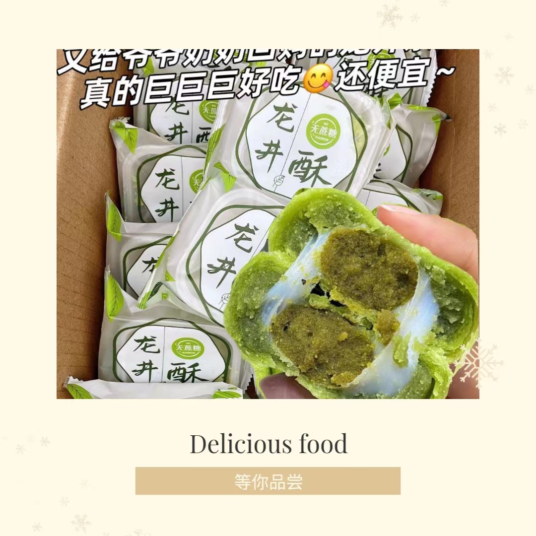 无蔗糖龙井茶酥饼绿茶酥抹茶麻薯杭州特产小吃糯叽叽糕点休闲零食