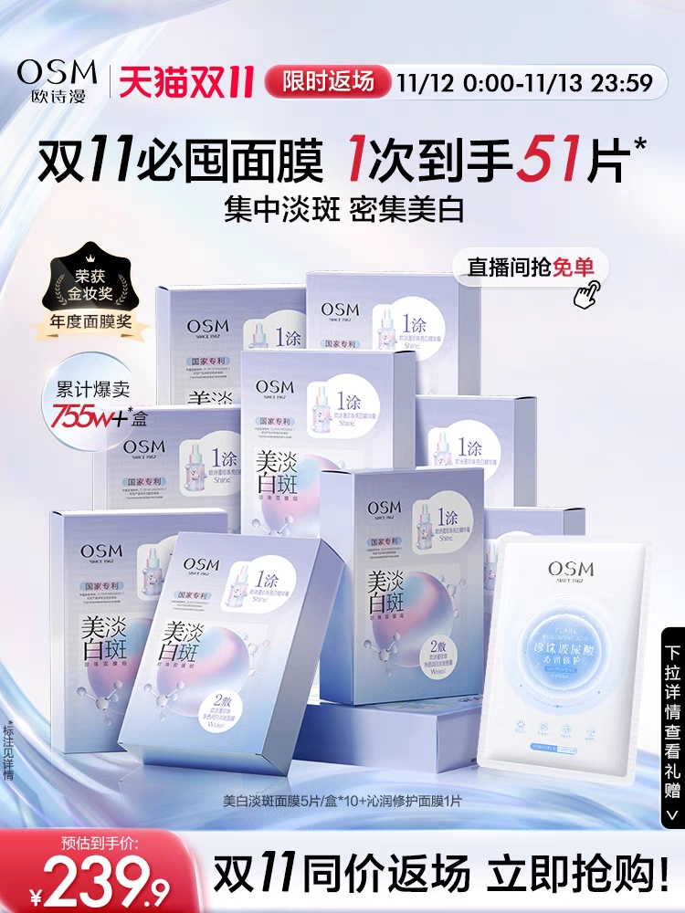 欧诗漫珍珠美白淡斑面膜补水保湿烟酰胺提亮熬夜护肤 美白淡斑面膜 30片