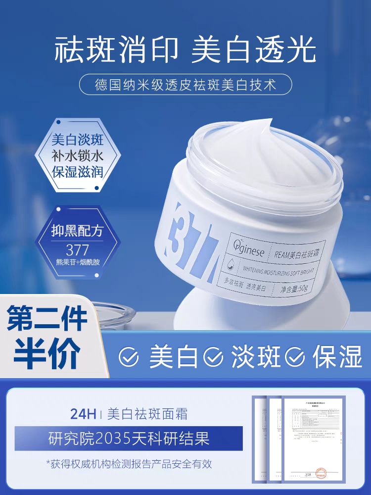 377美白祛斑面霜秋冬高保湿补水滋润熊果苷淡化色斑黄褐雀斑正品 50g