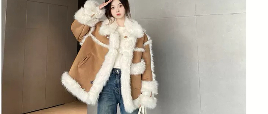 韩版甜辣风性感羊羔绒外套女2023秋冬新款氛围感复古毛领皮草上衣
