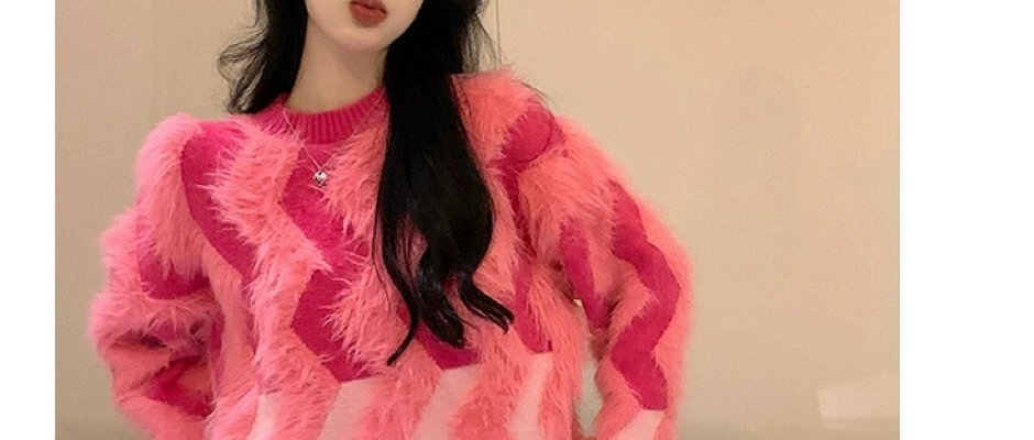 粉色水貂绒加厚保暖温柔毛衣女秋冬新款宽松减龄休闲百搭针织上衣