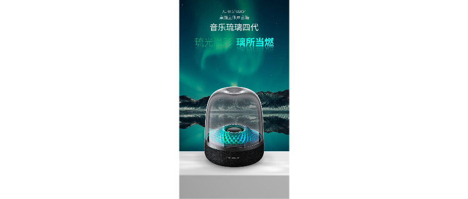 哈曼卡顿琉璃四代Aura Studio3蓝牙音响家用桌面重低音音箱三代4