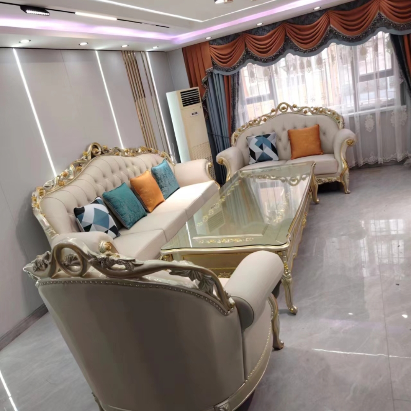 欧式真皮沙发123组合欧式三人位沙发头层牛皮实木雕花颜色可定制