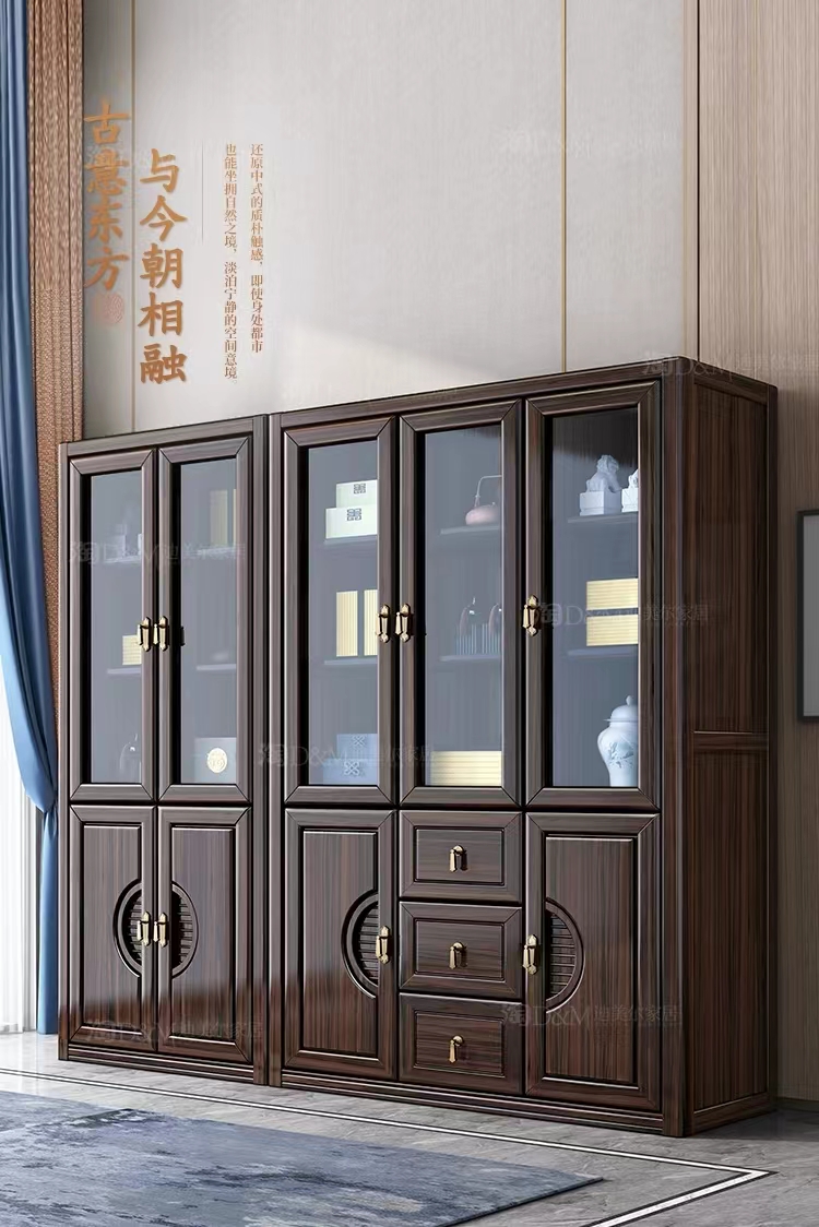 乌金木新中式全实木书柜