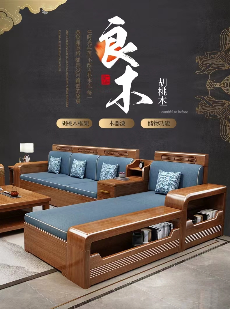 胡桃木实木沙发中式简约风格