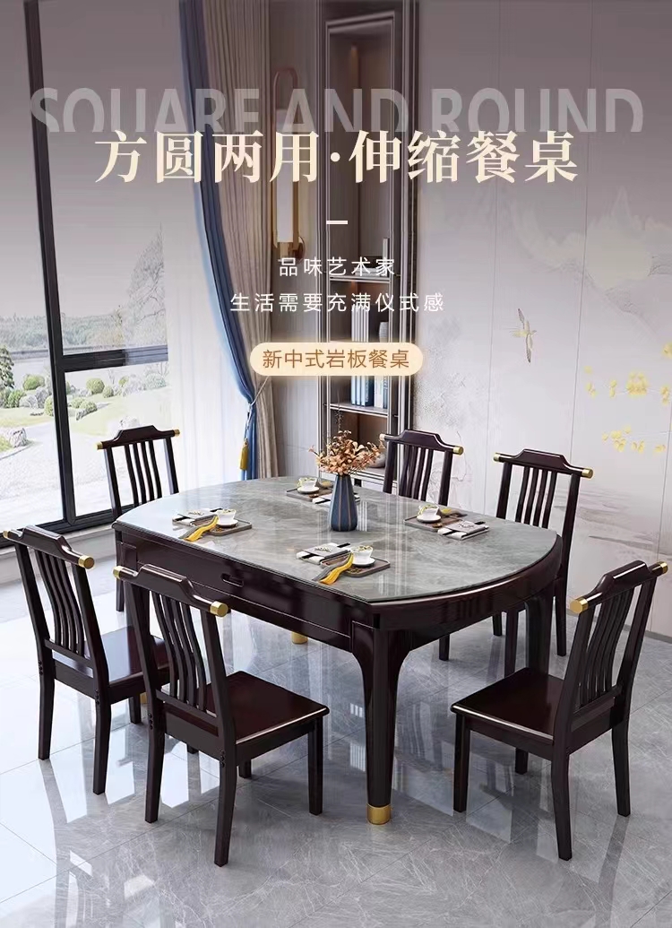 新中式餐桌椅组合家用小户型实木餐桌可伸缩折叠简约饭桌