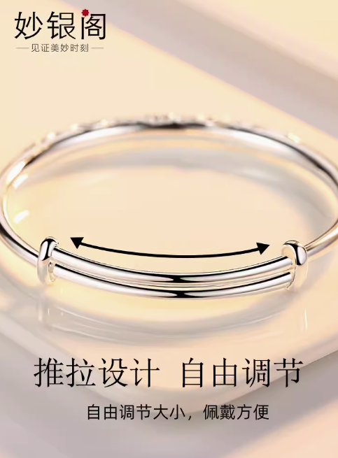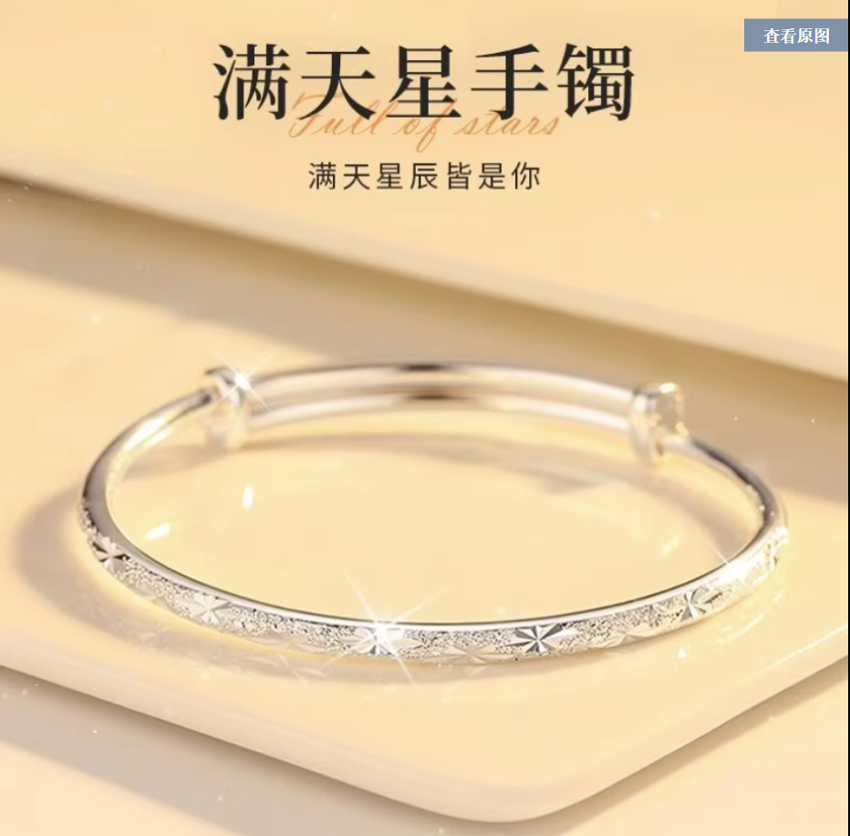 正品满天星银手镯女纯银s999实心足银手环送妈妈女友生日礼物