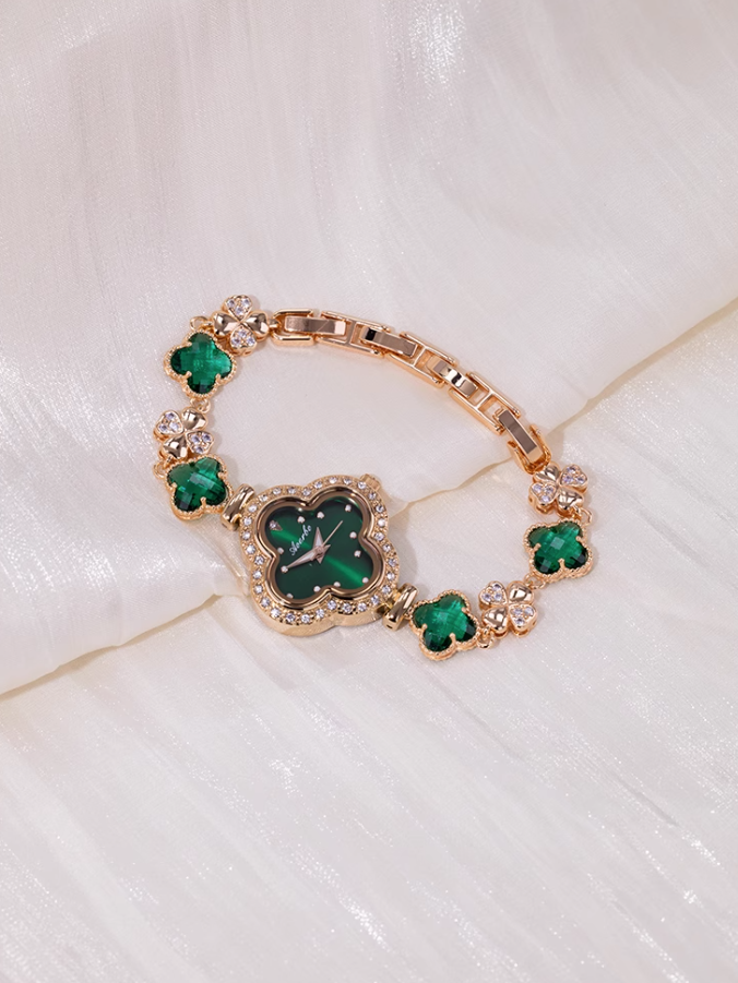 四叶草手表女手链条绿色镶钻轻奢小众高级感时尚气质精致新款女士