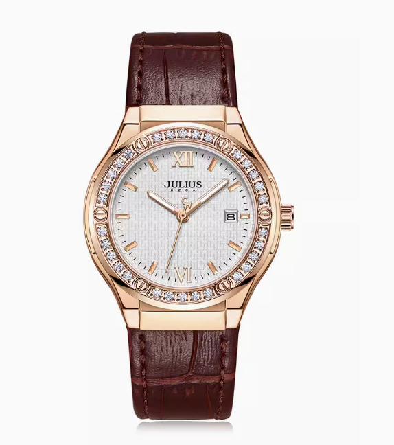 聚利时手表女2023新款官网正品小众轻奢锆石日历小香风女表1395