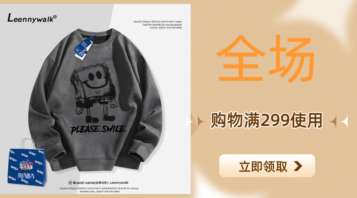 NASA联名海绵宝宝麂皮绒卫衣秋冬季男士加绒加厚保暖美式新款休闲