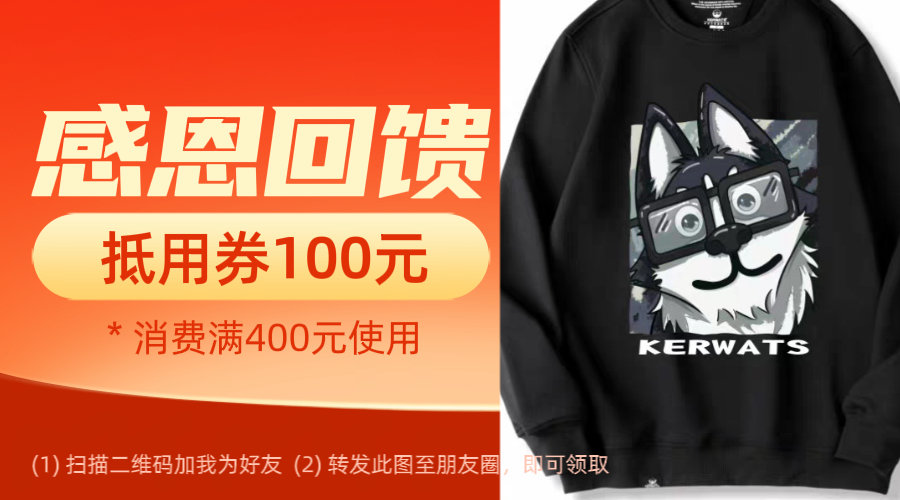KERWATS秋冬2023新款套头圆领重磅全棉卫衣男女情侣装小狗长袖