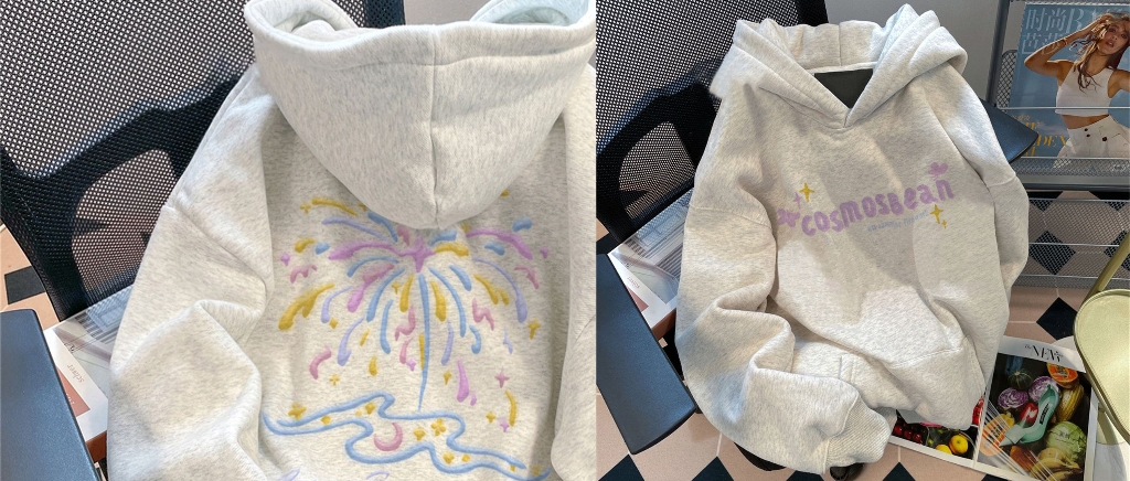 银狐绒盐系百搭设计感烟花连帽卫衣男女秋冬宽松ins潮流加绒外套
