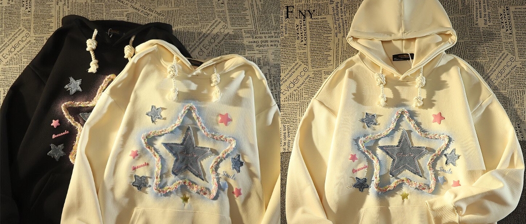 F.NY美式复古星星刺绣连帽卫衣女秋冬宽松慵懒新款设计感小众外套