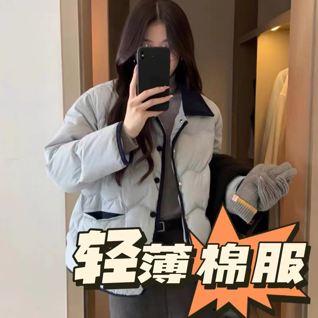 轻薄棉服女短款拼接灯芯绒小香风2023年新款冬季棉衣棉袄保暖外套