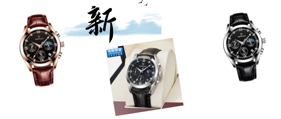 马克华菲手表男士潮流帅气高颜值真皮带石英手表经典款多功能防水 97.9元 黑色