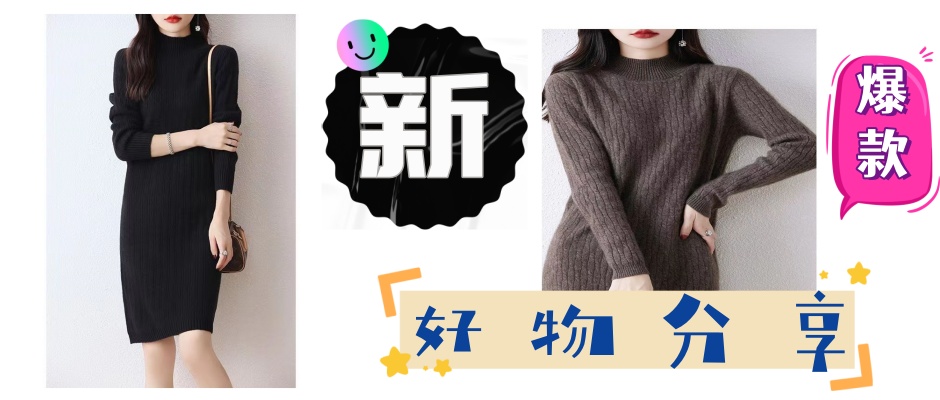 音卓半高领羊毛衫女纯色连衣裙2023秋冬新款小个子针织打底毛衣裙