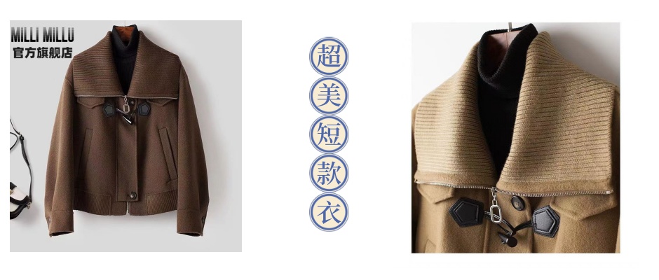 MILLIMILLU牛角扣双面毛呢大衣女短款秋冬新款双面呢短外套小个子
