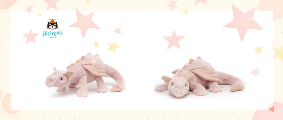 迷人的玫瑰色龙在天空中飞翔了一圈后实在是太困了!这只可爱的传说中的龙拥有奶茶色的皮毛和闪闪发光的玫瑰金色的翅膀、耳朵和脊刺!胖胖的爪子,弯弯的尾巴,还有一个精美的弹性鼻子,这个神话中的小家伙会让你心动。