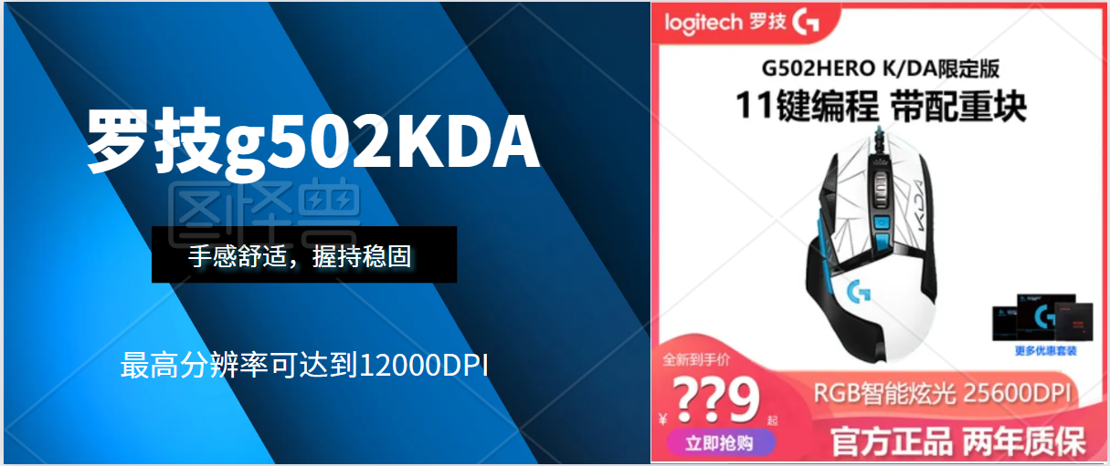 罗技G502采用了符合人体工学设计的外形,手感舒适,握持稳固。它的形状和按键布局可以适应不同大小手型的用户,使长时间游戏操作更加舒适和自然。 G502采用了高精度的光学传感器,可提供极高的准确度和精准度。它的最高分辨率可达到12000DPI