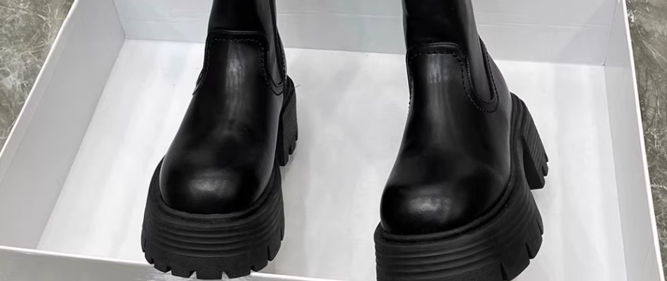 增高厚底显瘦不过膝骑士靴长筒靴女2023年秋冬新款真皮粗跟高筒靴