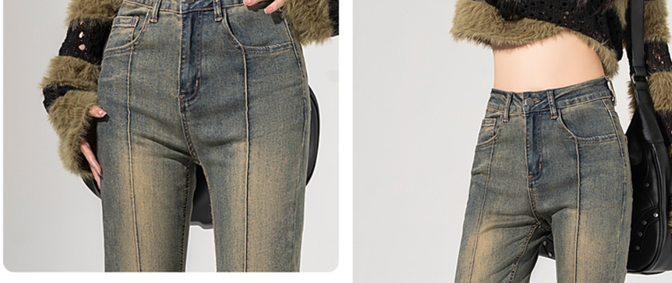 高腰直筒牛仔九分裤女2023秋季新款修身弹力显瘦烟管裤小个子做旧