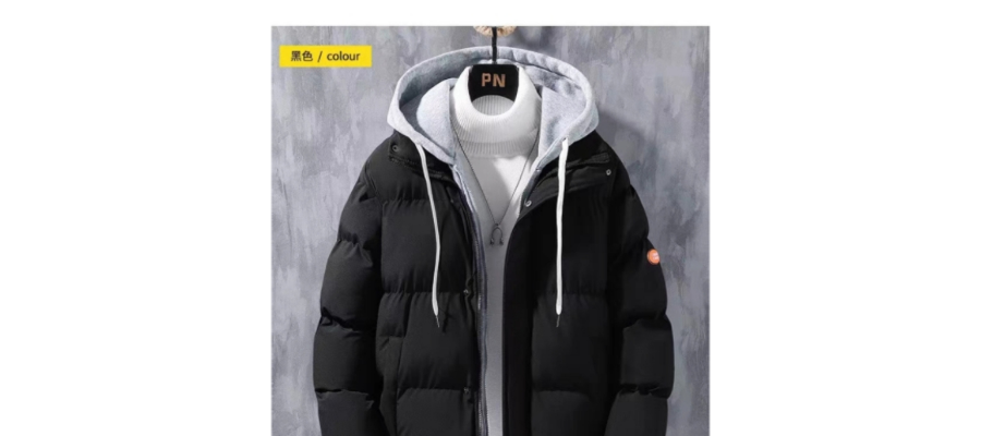 棉衣男士外套冬季新款宽松面包服潮流假两件连帽加厚保暖羽绒棉服
