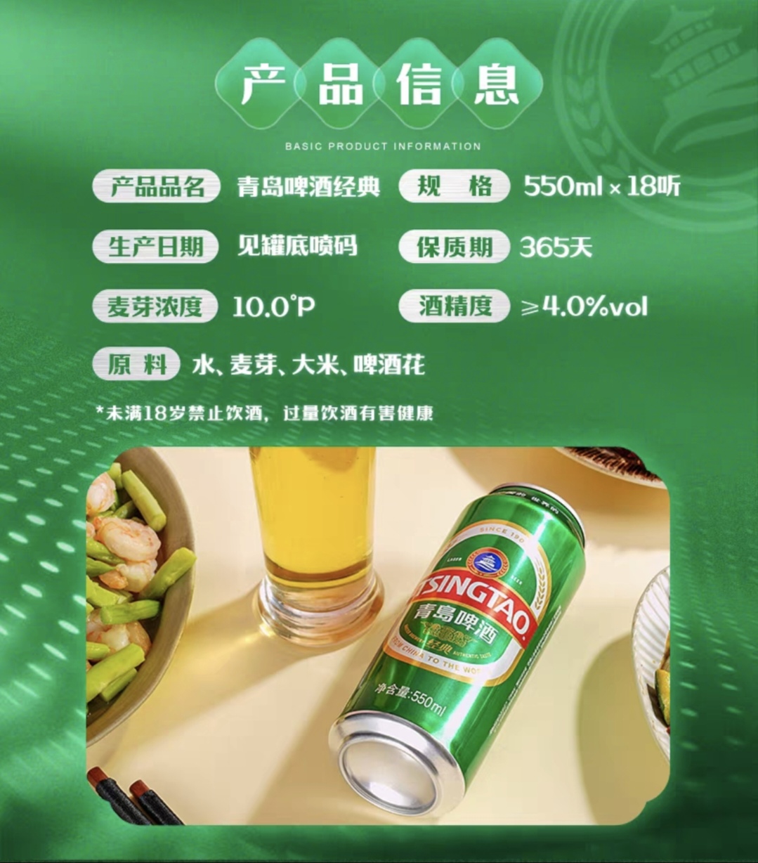 由山东青岛啤酒厂制作 经过九九八十一次工艺出厂 味道醇厚 泡沫丰富 年轻人的首选