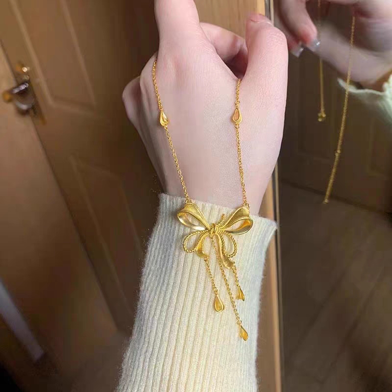 项链是足金的,这款设计真的太好看啦!蝴蝶 结加爱心的组合 很适合年轻女孩子来戴, 眼就看上这个款啦,啊啊~真的很好看啊!