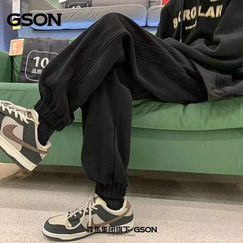 DEFINEX束脚裤男秋冬季加绒加厚青少年宽松重磅灰色运动休闲裤子