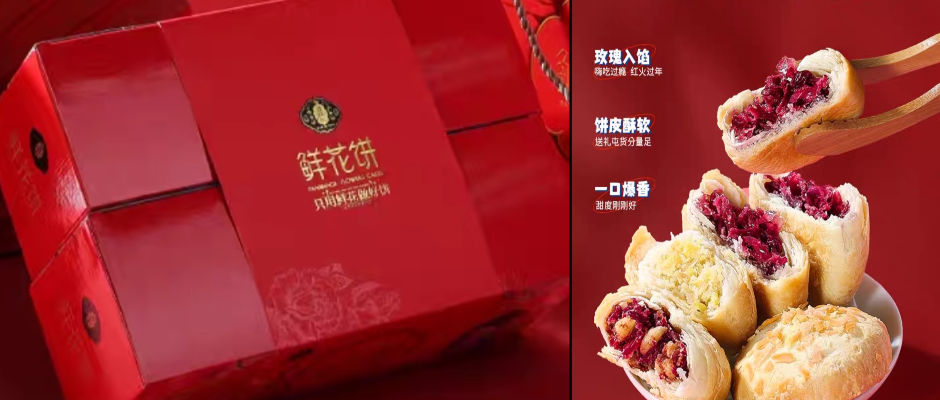 地道花食年礼 玫瑰入馅 皮薄馅足 饼皮酥软 甄选云南重瓣红玫瑰 自有百亩玫瑰基地