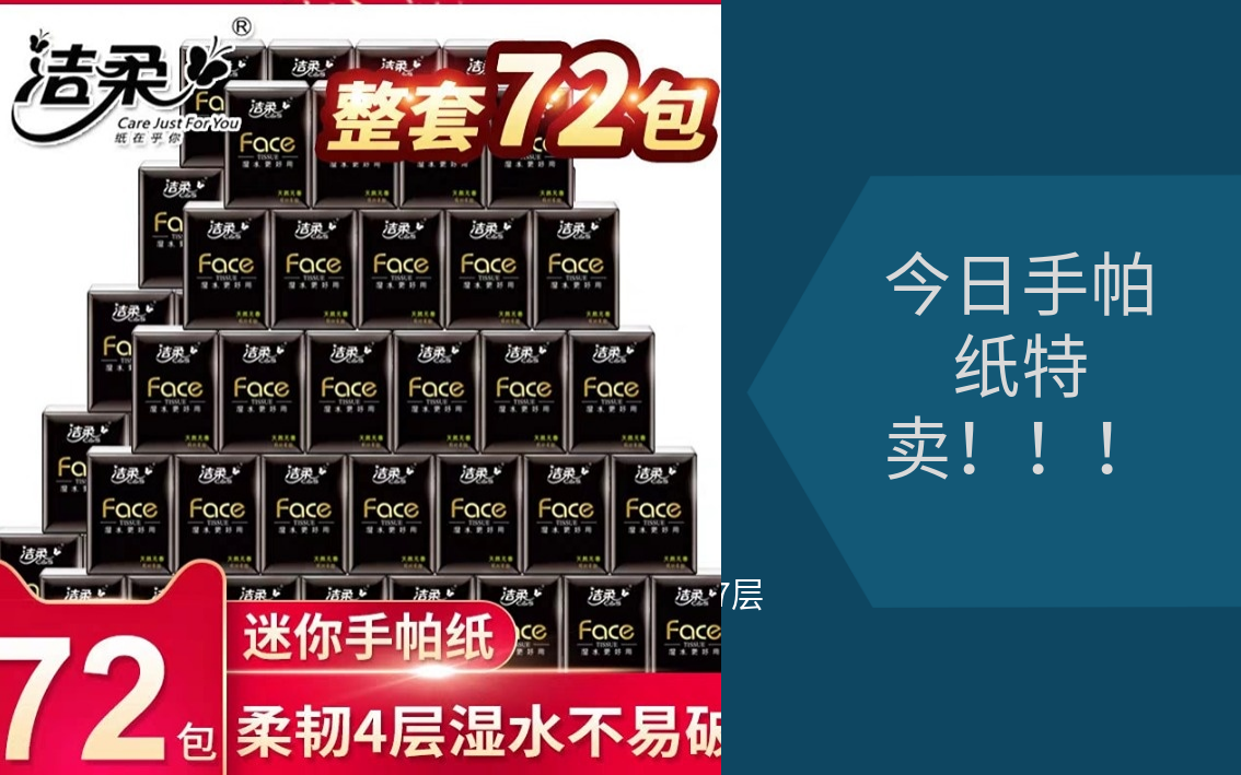 手帕纸洁柔 4层6片共72包 可湿水面纸无香随身装餐巾纸家用 包邮