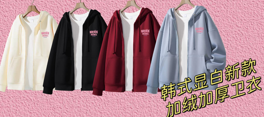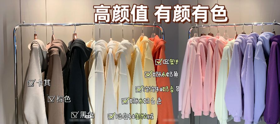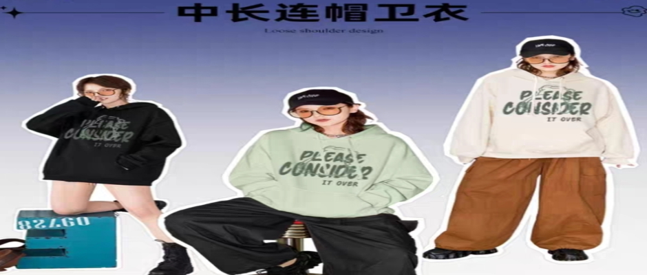 1.100%纯棉 2.秋冬季新款 3.宽松连帽 4.微落肩版型 5.罗纹下摆