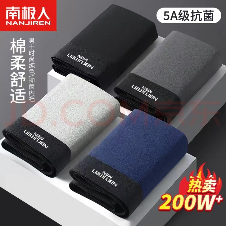 南极人男士内裤男纯棉平角裤头5A级抗菌防螨男式四角男生短裤衩4条XL