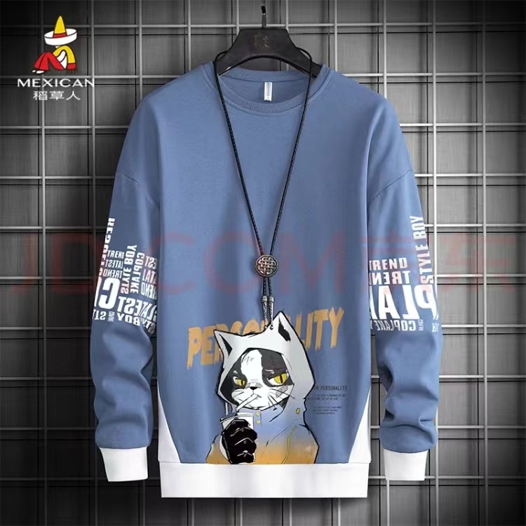 稻草人卫衣男士ins潮流宽松长袖T恤青少年圆领套头上衣 雾霾蓝 4XL