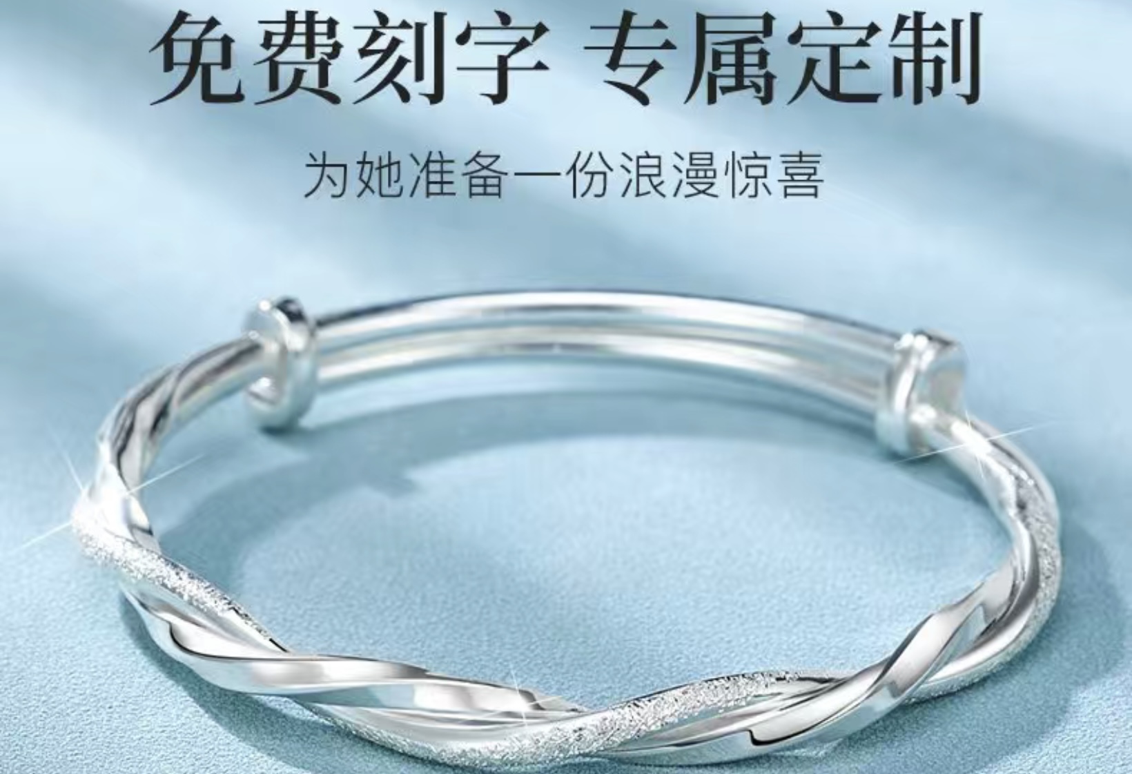 正品足银9999实心繁花推拉手镯纯银不掉色女友老婆情人节生日礼物