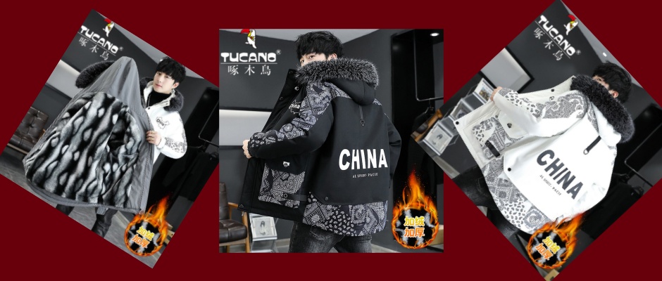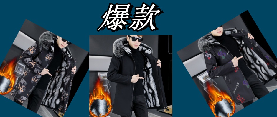 冬季男装连帽中长款加绒加厚爆款毛领棉衣加棉保暖棉服男士潮外套