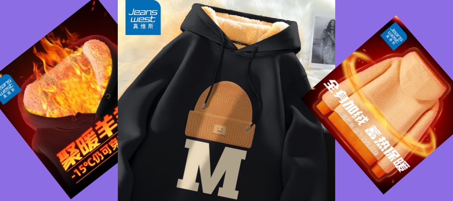 真维斯加绒卫衣2023新款男士加厚秋冬连帽外套美式复古休闲上衣服