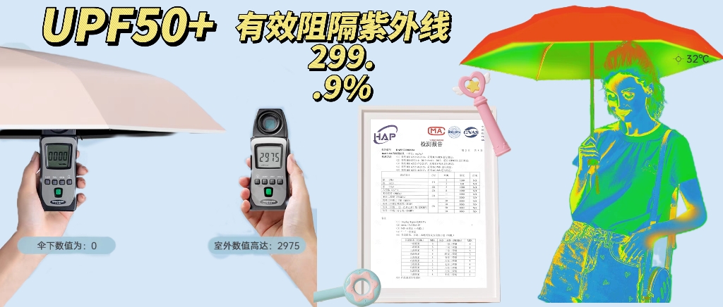 高颜出街 隔热防晒 彩胶涂层 持久防晒 伞下体感降温~18℃