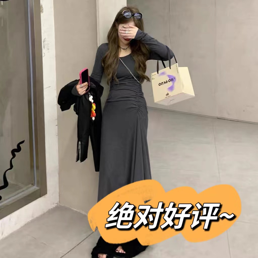 灰色 显瘦高级 包臀裙 显示身材 长裙 拉长身高