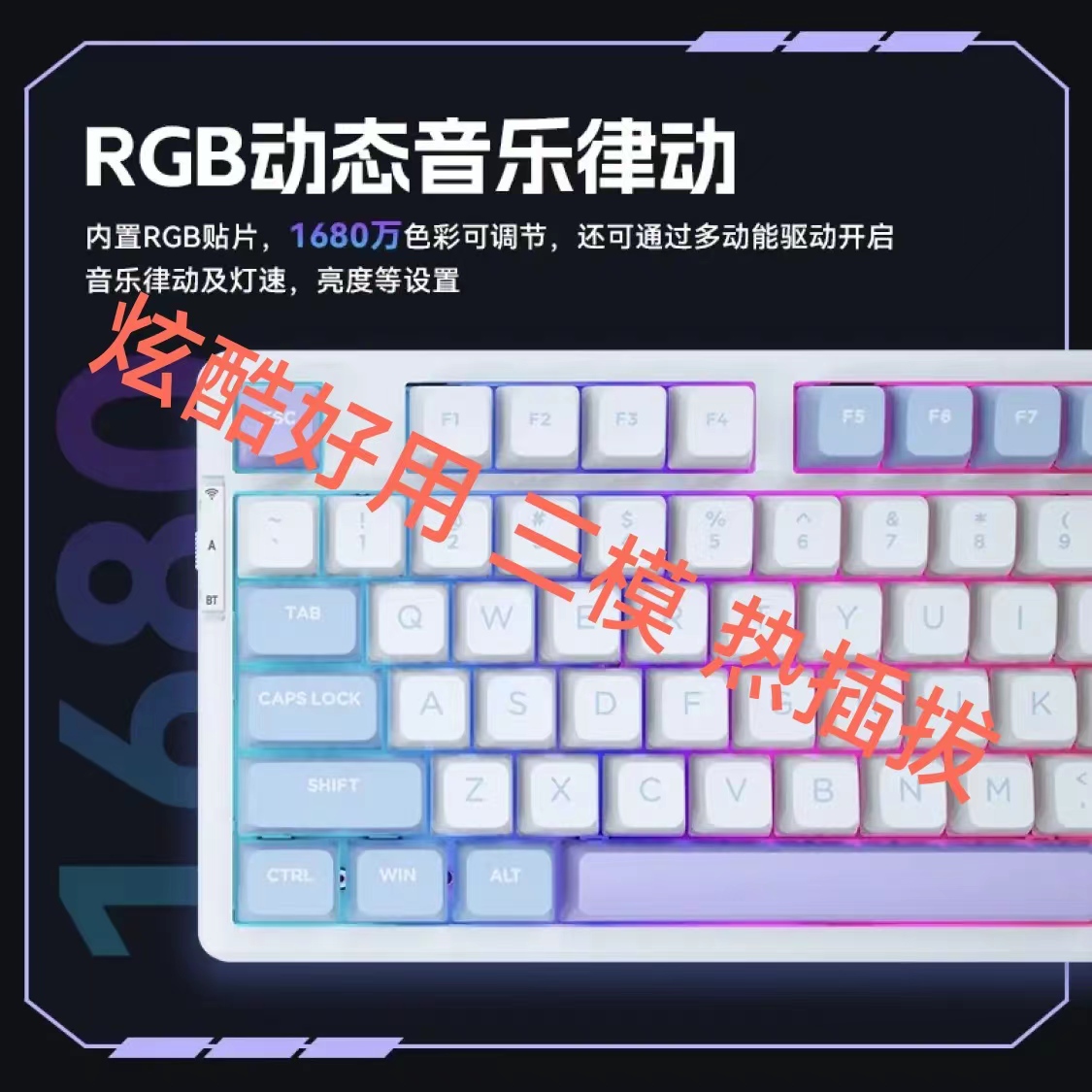 VGN V98Pro 游戏动力 客制化键盘 机械键盘 电竞 办公 全键热插拔 三模 gasket结构 V98Pro水晶酒红轴 海盐