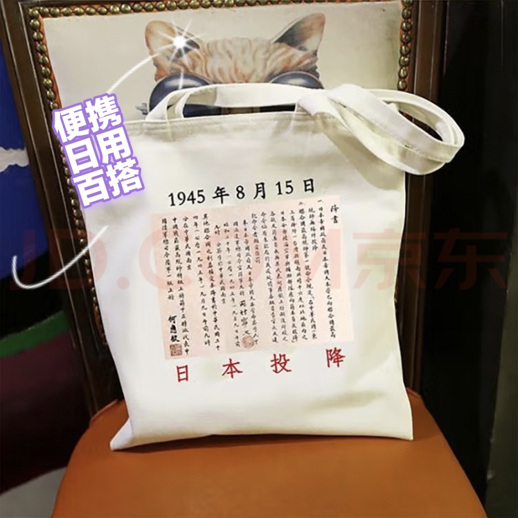 日本受降投降帆布袋抗日胜利单肩包铭记历史爱国定制学生书包手提 A