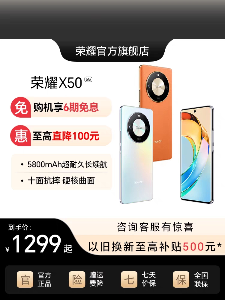 【至高立减100元】荣耀X50 新品5G智能手机全球首款瑞士SGS整机五星抗跌耐摔认证