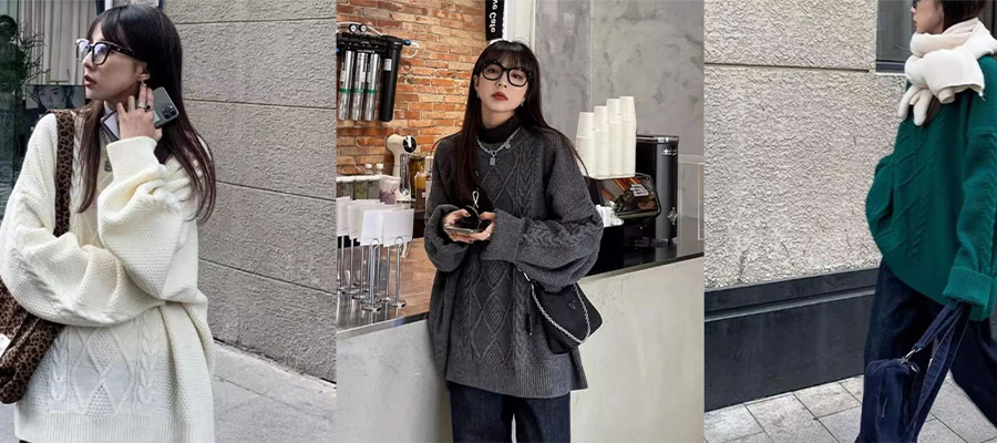 日系奶fufu麻花圆领毛衣女秋冬宽松慵懒风bf软糯加厚针织衫外套潮