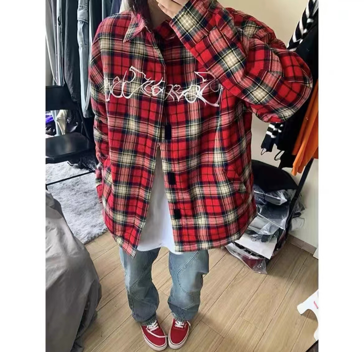 长袖高级感外套hiphop西海岸刺绣衬衣秋冬,显白,穿起来显瘦